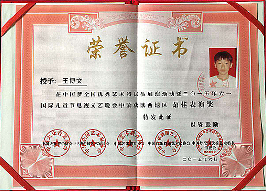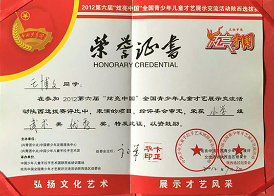 榮譽 "2012炫亮中國(guó)全國(guó)少兒才藝展示"優秀獎