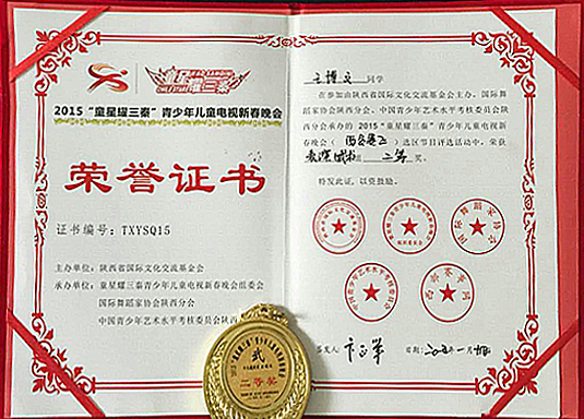 "2015童星耀三秦青少年兒童電視新春晚會"二等獎